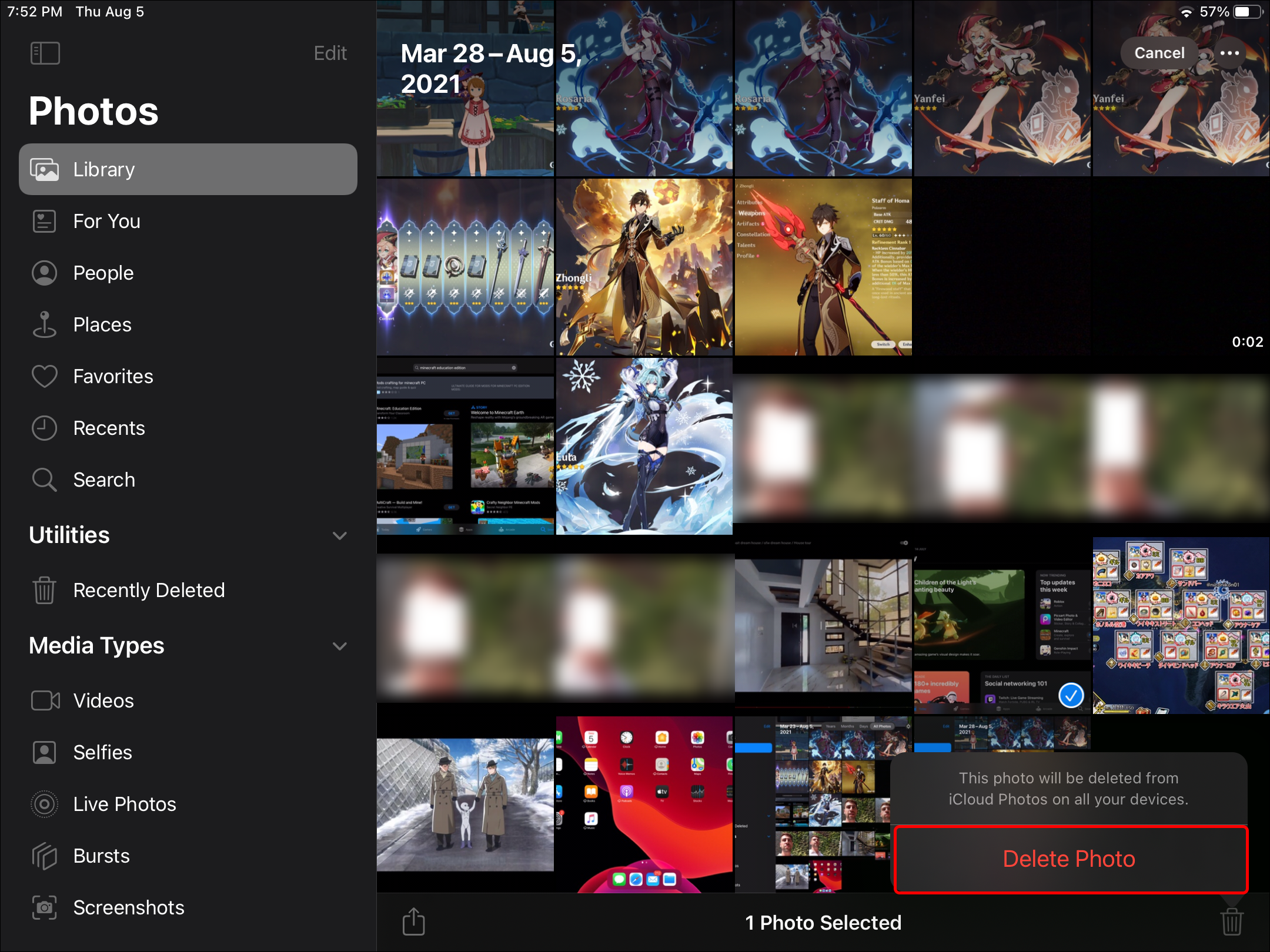 Alternatively, you can right-click a picture, then select “Delete Photo.” Once your iPad has an internet connection, the photos removed from your Mac will also be removed from your iPad.