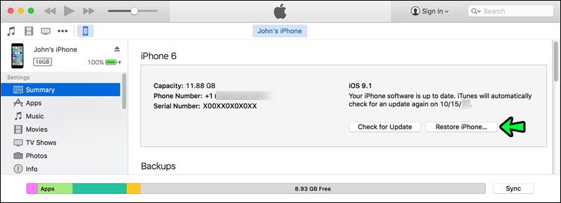 - Click “Summary” in iTunes (the menu on the left-hand side of your iTunes window).