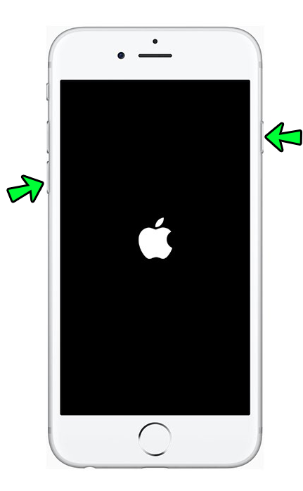 - Press and hold the side button. The screen will turn off and turn on. Keep holding the button until the Apple logo appears.