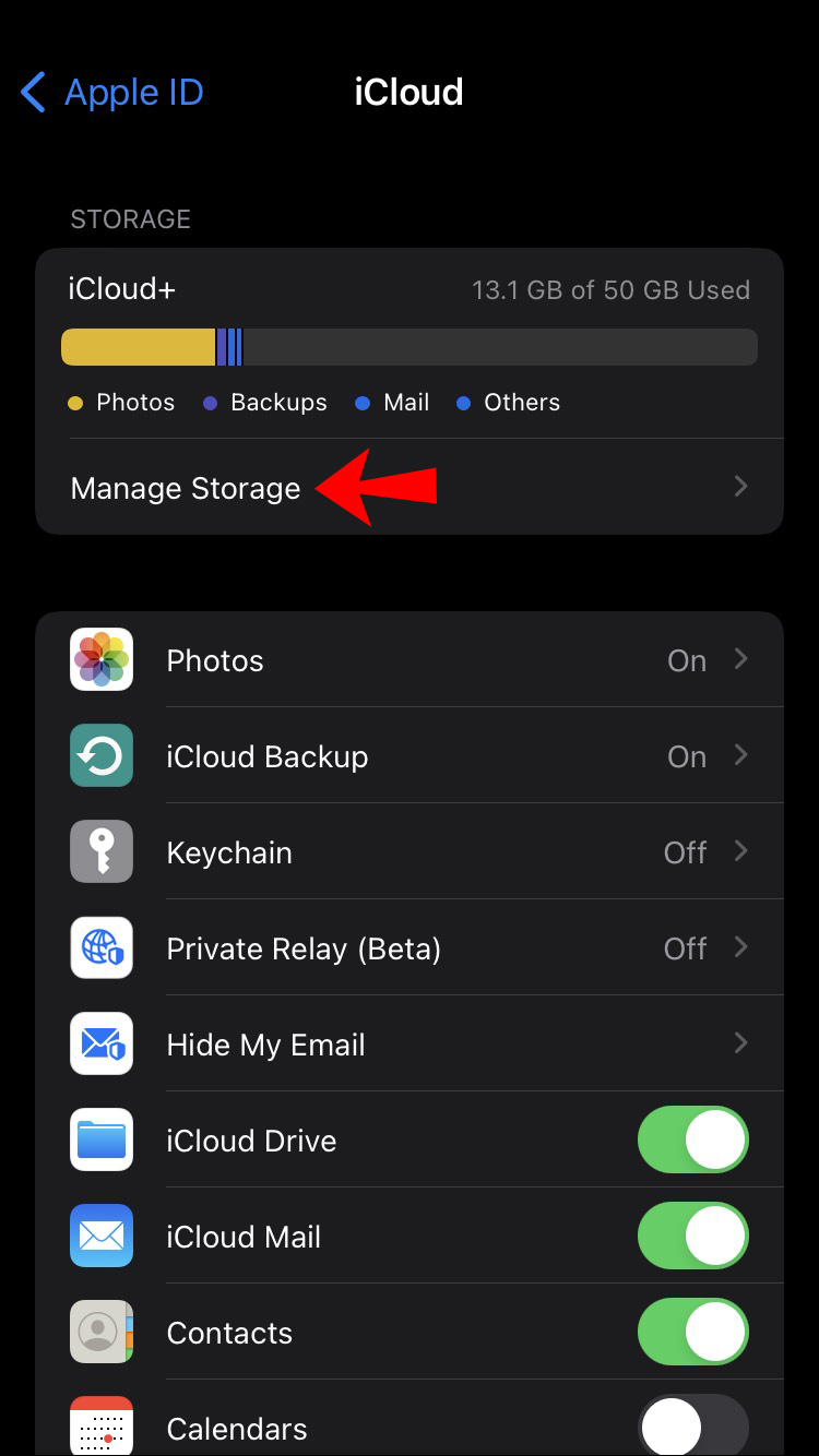- Tap on your iCloud, and go to the “Manage Storage” option.