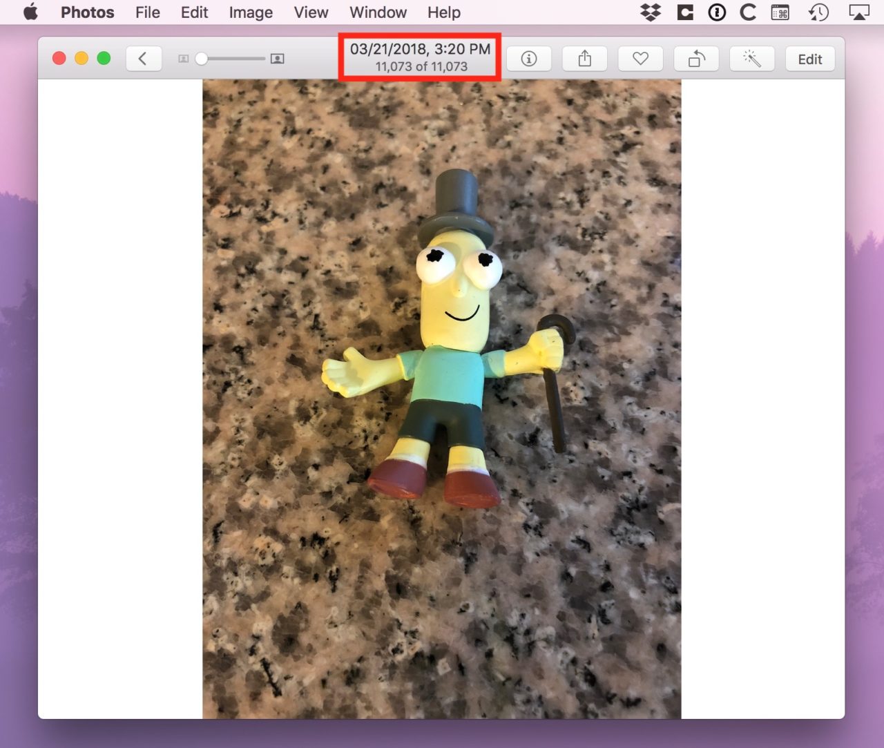 Alternatively, if an image has no location info attached, you’ll find that data missing in the toolbar.