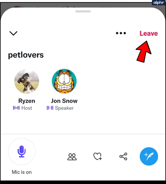 - To leave the space and return to your Twitter timeline, tap on “Leave” found at the top right-hand corner.