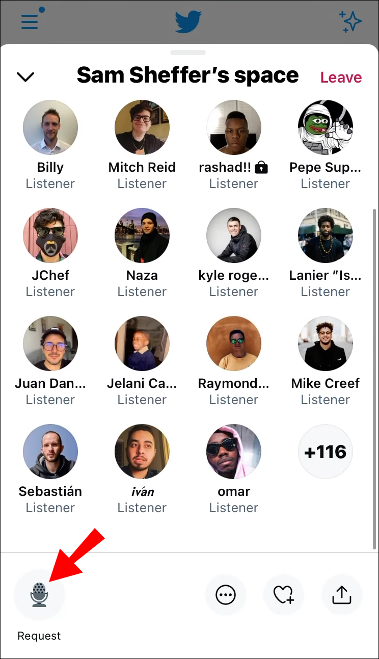 - To leave the space and return to your Twitter timeline, tap on “Leave” found at the top-right hand corner.