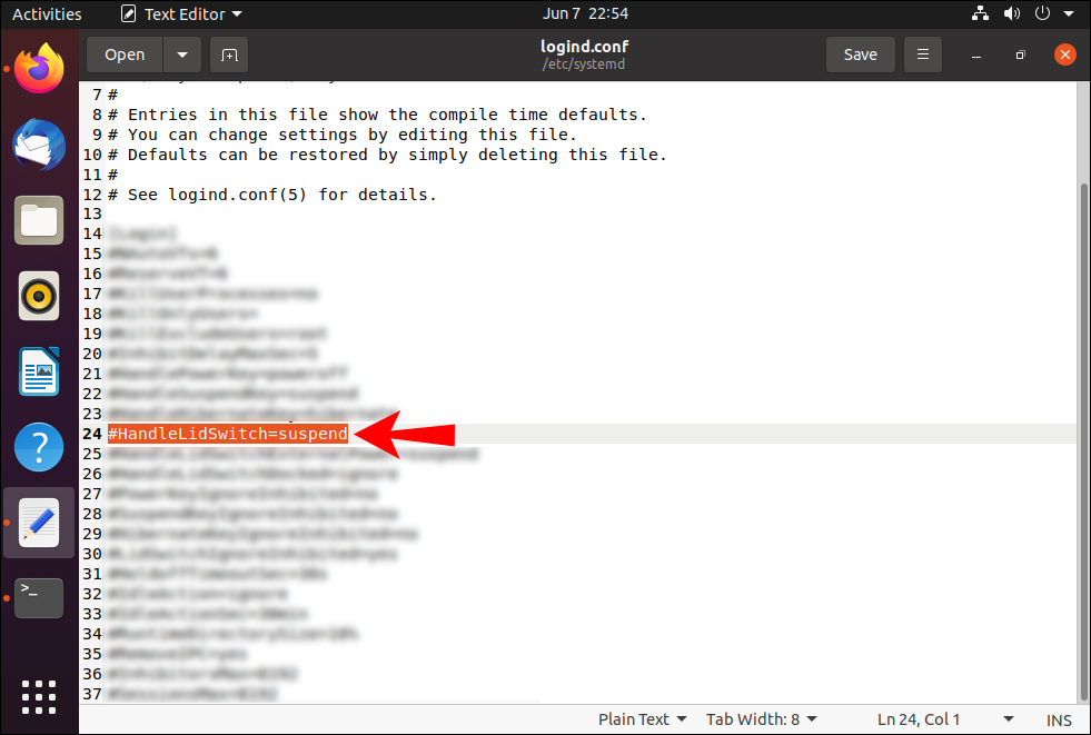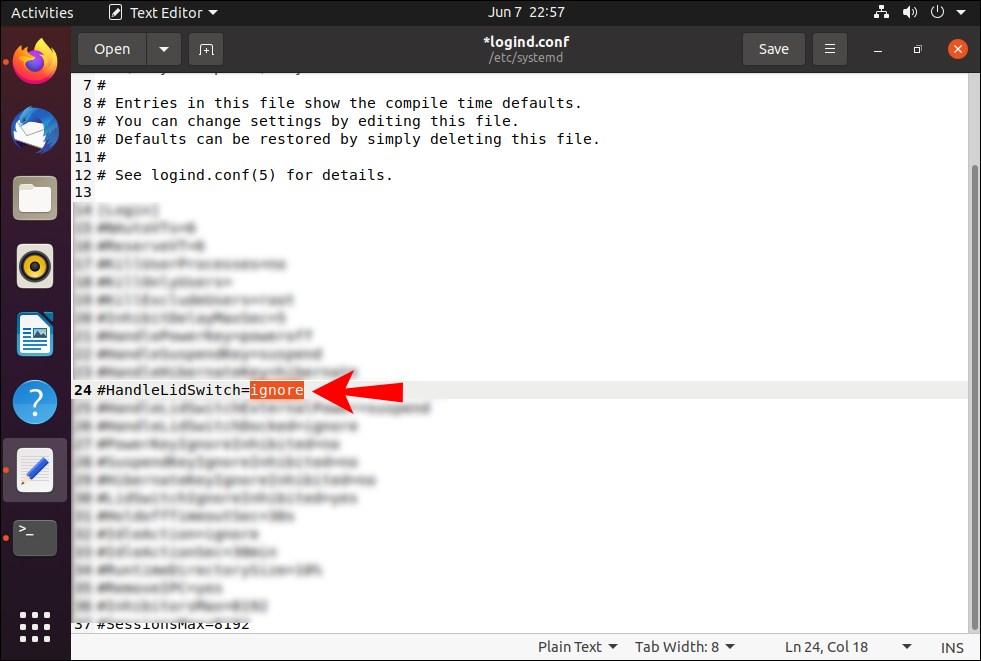 sudo gedit /etc/systemd/logind.conf.
