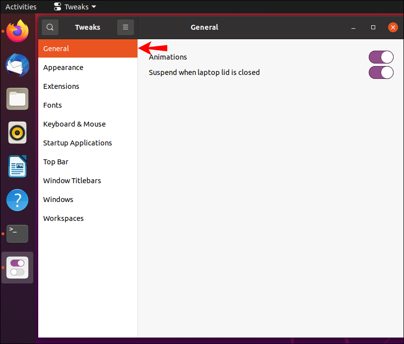 - Open the “Tweaks” application.