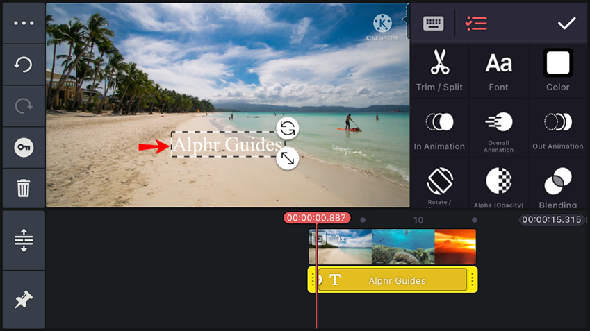 Working in Kinemaster on an iPad is the same as using the app on an iPhone. For a more detailed explanation of how to add and adjust text in your video, please refer to the “How to Add Text to Video in the Kinemaster iPhone App” section of this article.