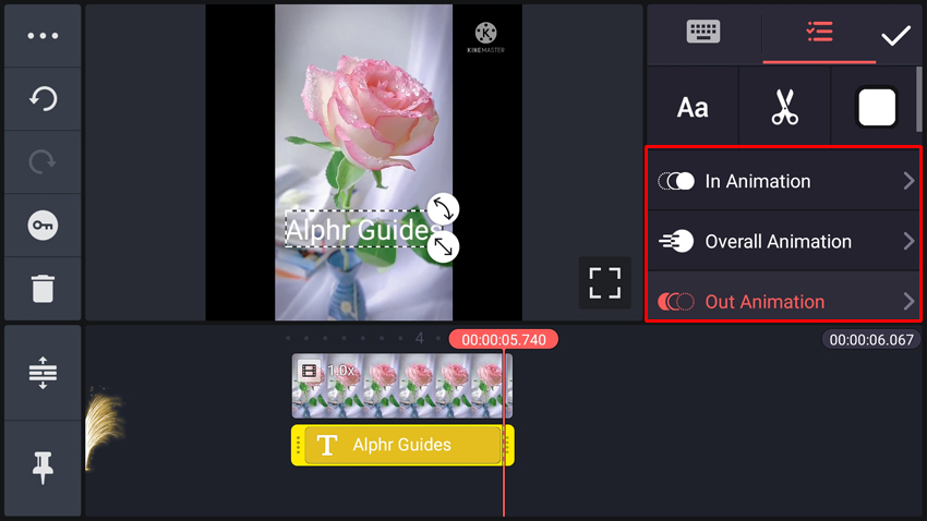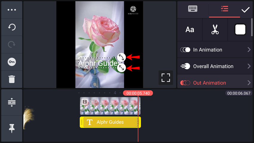 Kinemaster on Android allows you to change your text in many ways. The size, font, color, and background of the text are fully customizable, and there are various affects you can add. Finally, you can choose whether the text will rotate, slide, drop, or be animated in another way.
