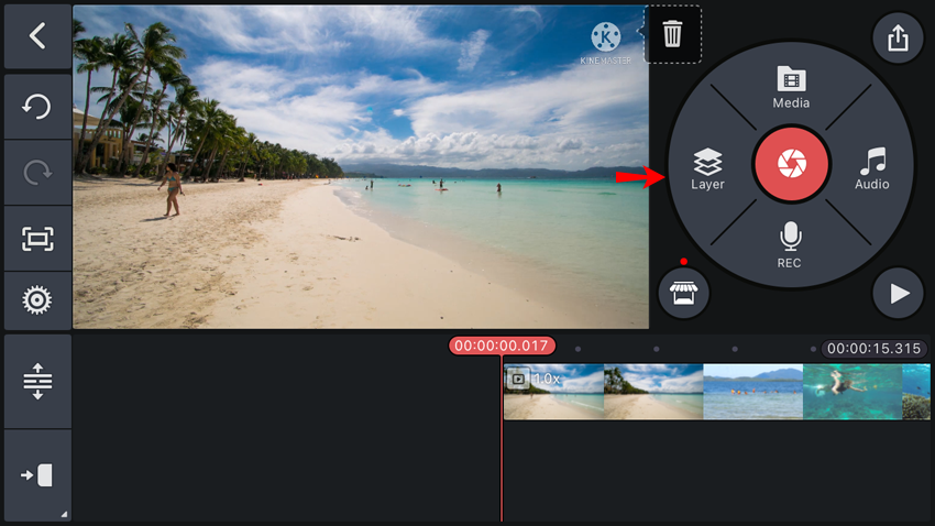 - Import the recording to enable the “Layer” option in the menu wheel.
