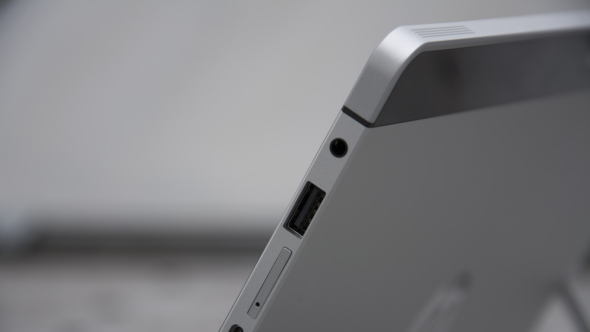 The Elite x2 is also quite practical for a tablet-based 2-in-1, with both full-fat USB Type-C and standard USB 3 ports on the right edge, a 3.5mm headphone jack and microSD and micro-SIM trays. Stereo speakers sensibly adorn the top edge and there’s a Kensington lock slot on the left edge, too. There’s plenty to like here.