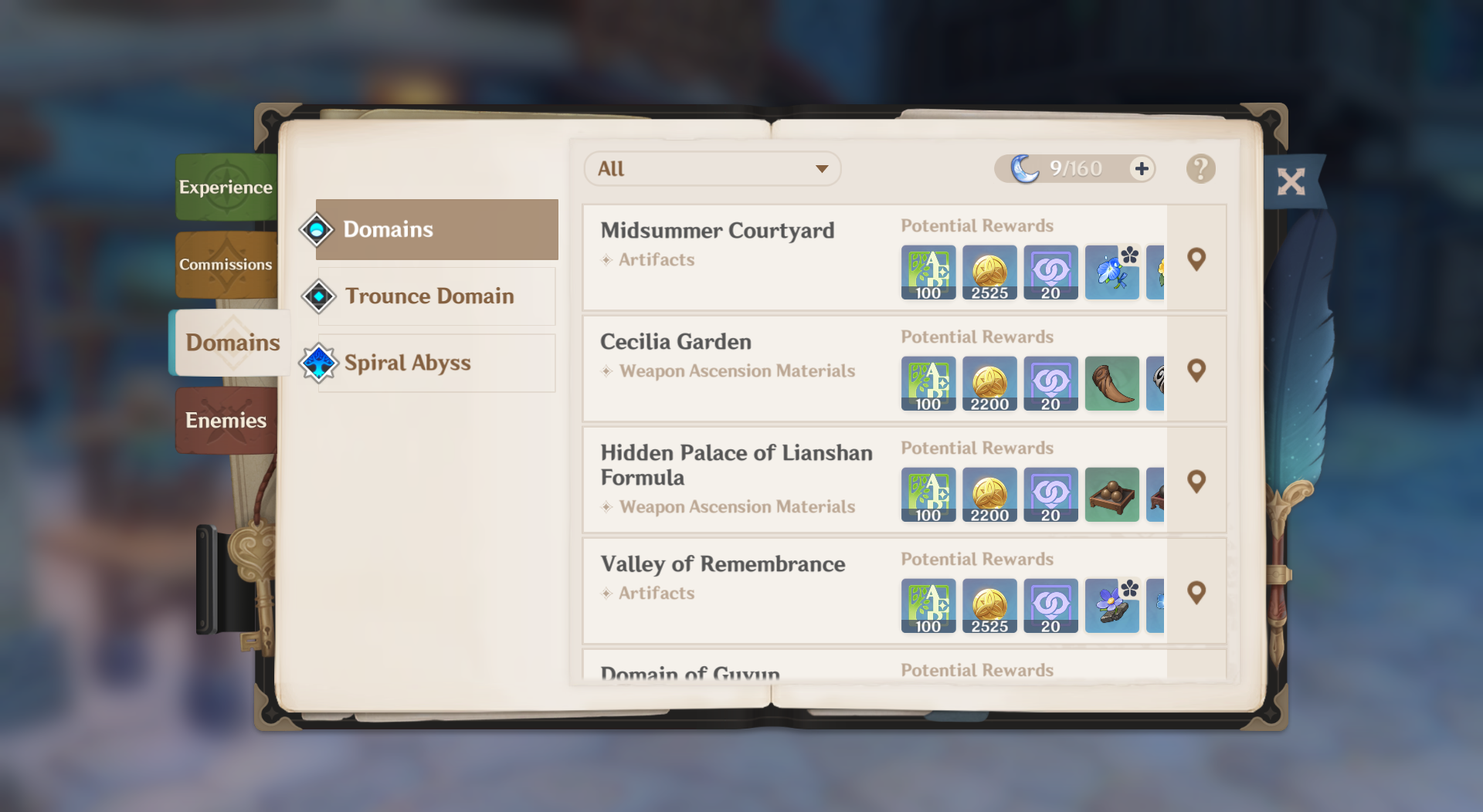 Domains are very short challenges that you can find in temple-like entrances around the overworld. There are many rewards you can reap from completing them, including Primogems, all sorts of EXP, and Materials. Depending on the difficulty, a Domain can yield from 10-20 Companionship EXP.