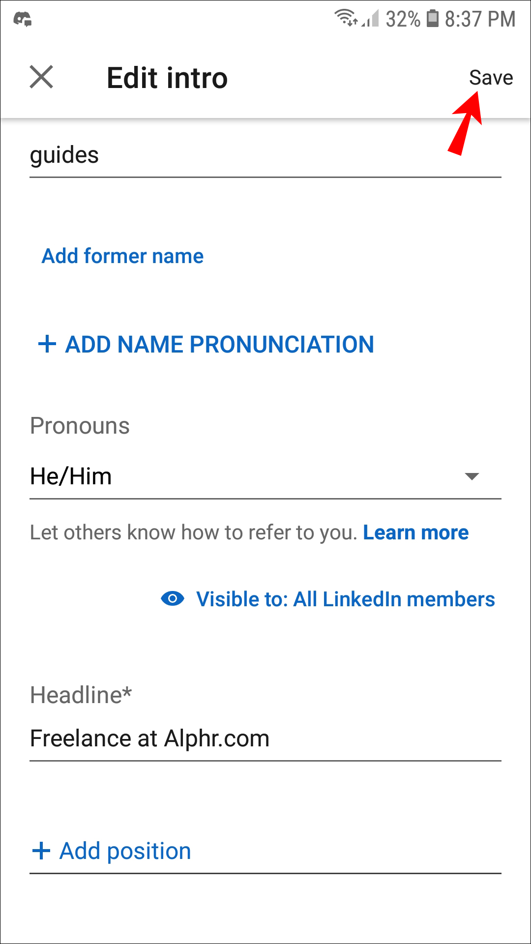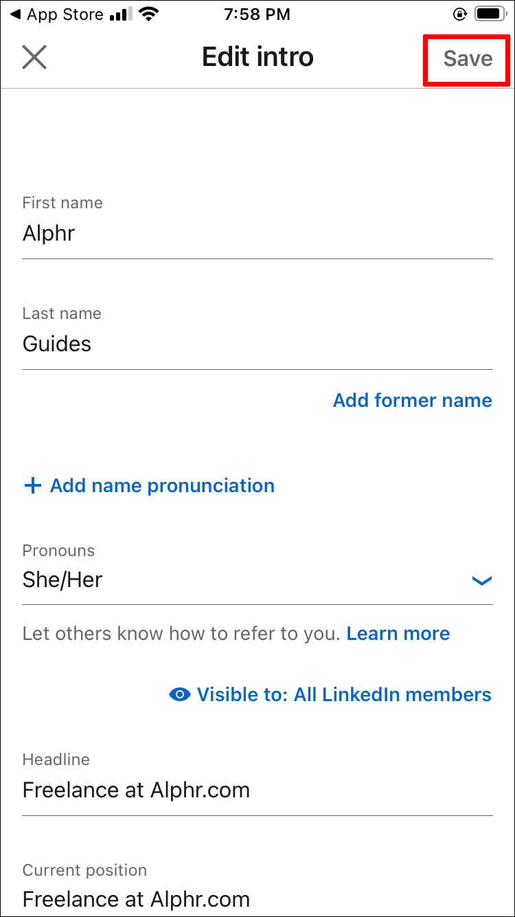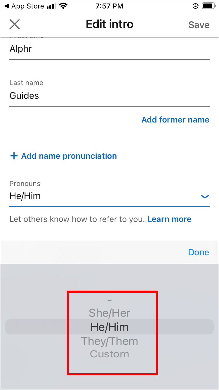 That’s all there is to it. Now when you open your profile again, you’ll be able to see your pronouns next to your name on your LinkedIn profile. If they aren’t there, refresh your app a few times and make sure you have a stable internet connection.