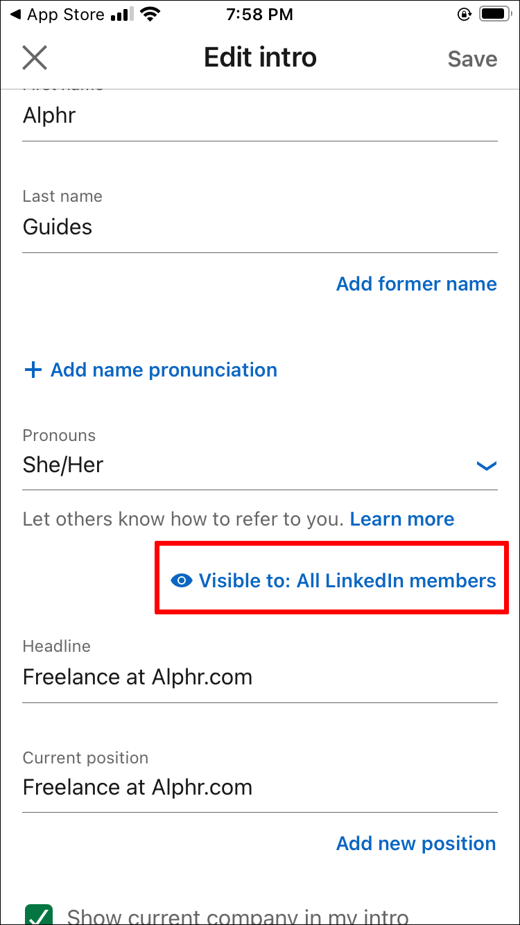 Adding your pronouns to your LinkedIn Profile on your iPhone is equally simple. This is how it’s done on the iPhone mobile app: