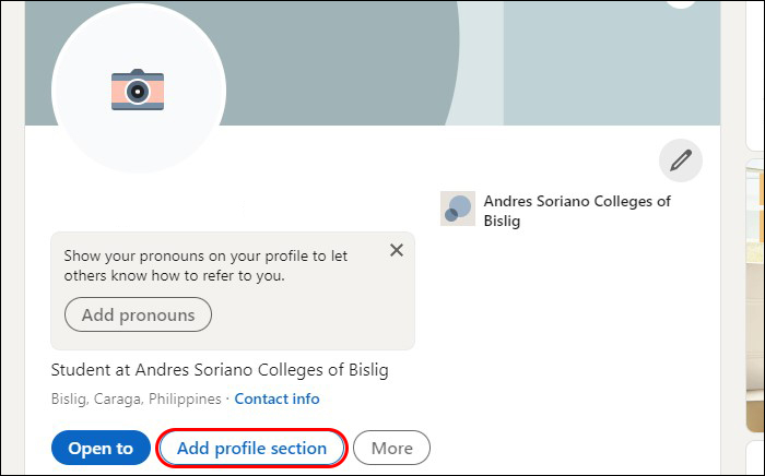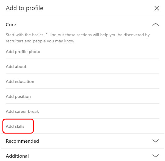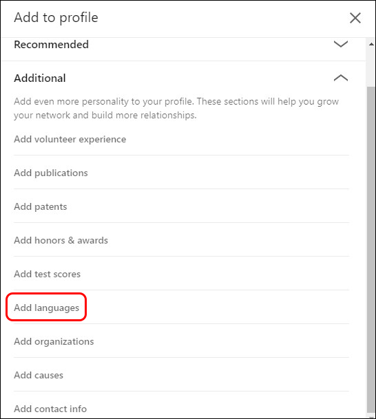 If you don’t have a skills section on your profile yet, you won’t be able to add language skills through it. Complete the following steps to add a skills section first, and then add language skills to it.