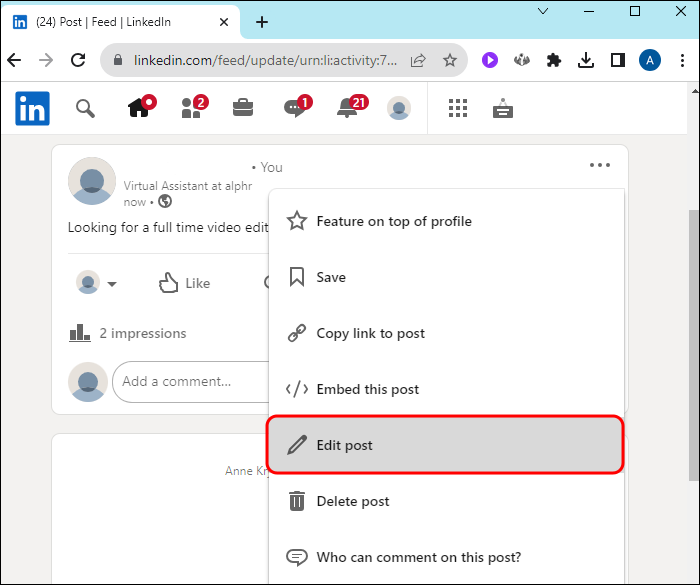 How to Edit a LinkedIn Post