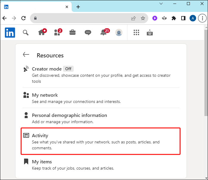 Note that you won’t see an “Activity” section if you’ve not interacted with LinkedIn for a year or more.