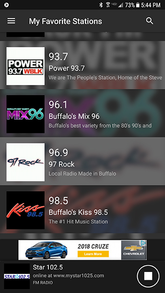 Once you’ve set your proper preferences for how you want to listen to the radio, you can return back to your favorites list using the menu. If you don’t have headphones plugged in, you’ll see some of your stations greyed out and only accessible by plugging the headphones in.
