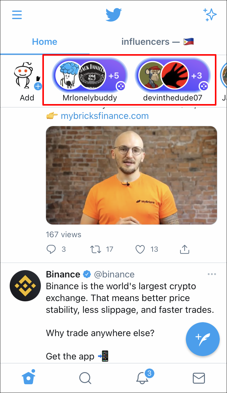 If someone has started a Twitter Space, their profile picture will have a purple border. It can either be one profile picture, or two bubbles merged. Sometimes, a Space host will share their Space link in a Tweet. If it appears on your home page, you can simply tap on the link to join.