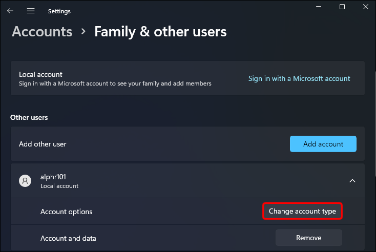 - Choose “Change account type.”