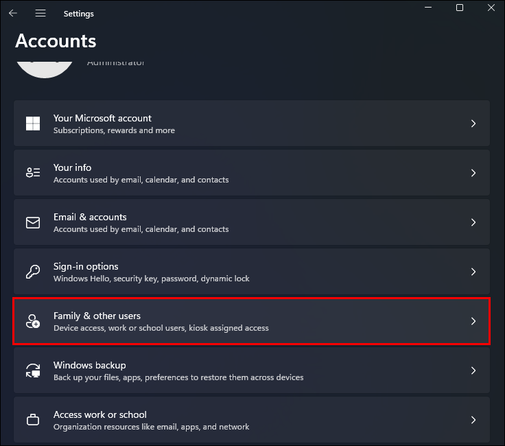 - Access the “Family & other users” page from the “Accounts” settings.