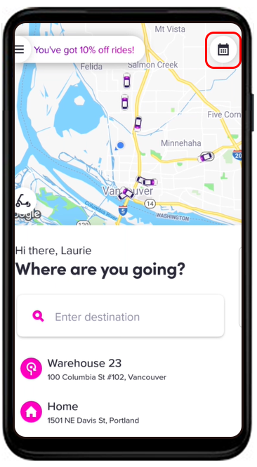 - Go to the “Calendar” on the top right of the screen in the Lyft app.