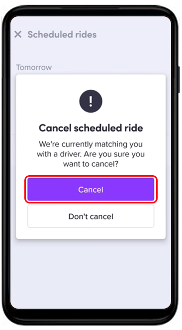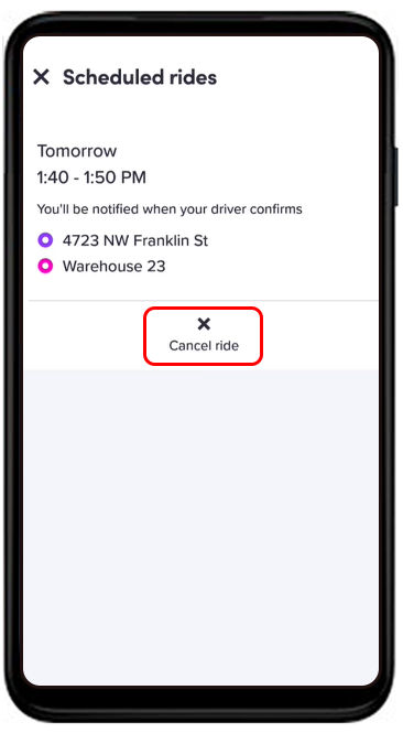 - Confirm by selecting “Yes, Cancel Ride.”