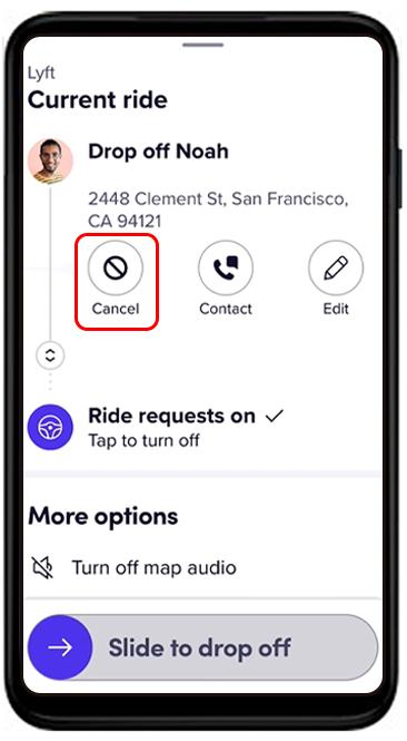 - Select “Cancel Ride.”