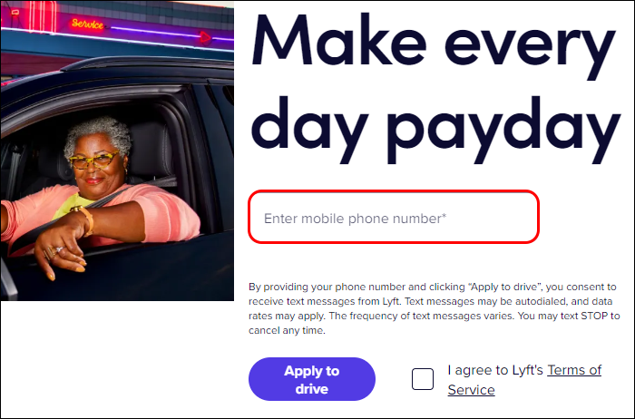 - Sign up to drive. You’ll need to enter your phone number or email.