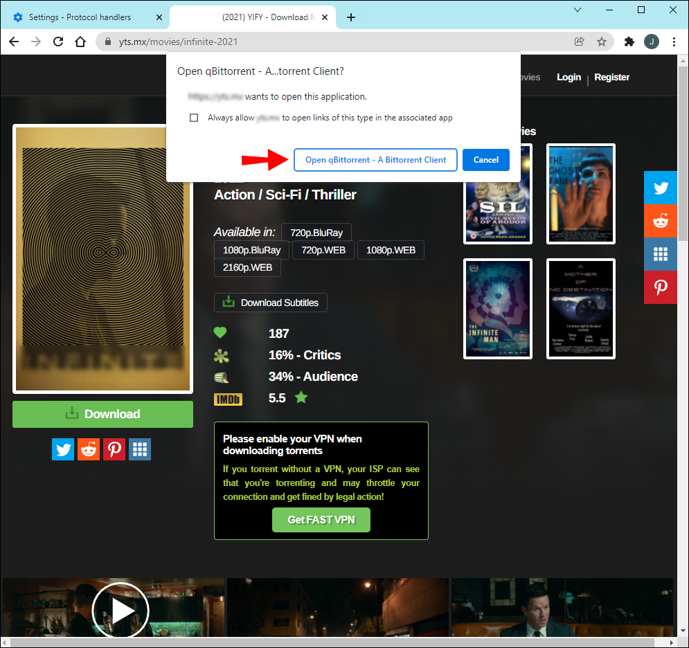 - Open the magnet link on your browser using your preferred BitTorrent platform.