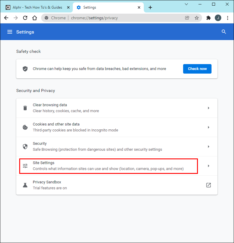 - Find the “Handlers” option that says “allow sites to ask to become default handlers for protocols.” Click on it.