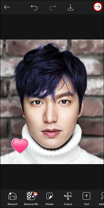 - To save your edit, click on the right-pointing arrow and save the picture to your device or share it with the Picsart community.
