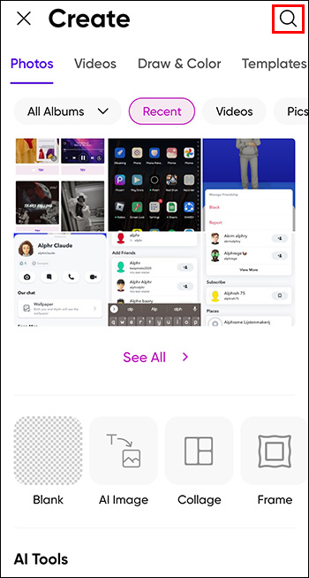 - Choose a photo you want to edit from your Gallery or search for Picsart’s stock photo by clicking on the magnifying glass symbol in the top right corner.