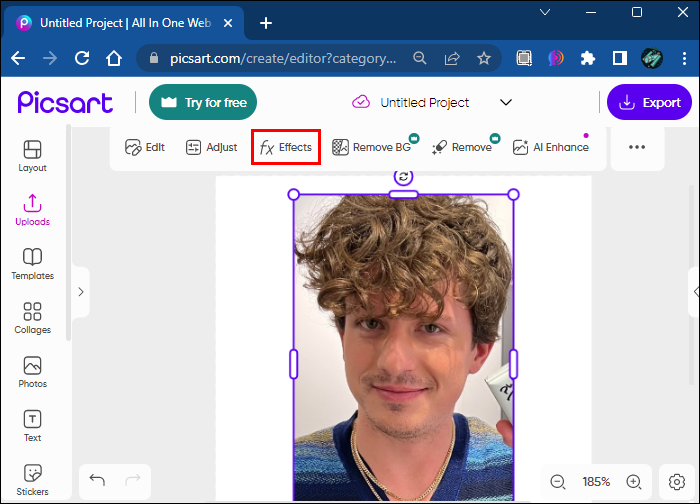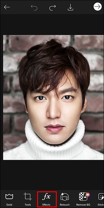 - Next, click “Effects” from the toolbar above your chosen picture.