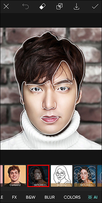 - Swipe the effects until you reach the “Sketch” effects.