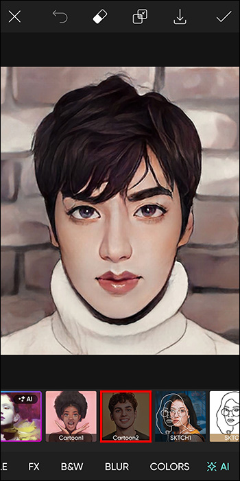 - Next, choose between two new Picsart Cartoon effects, “Cartoon1” and “Cartoon2.”