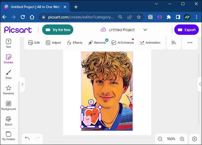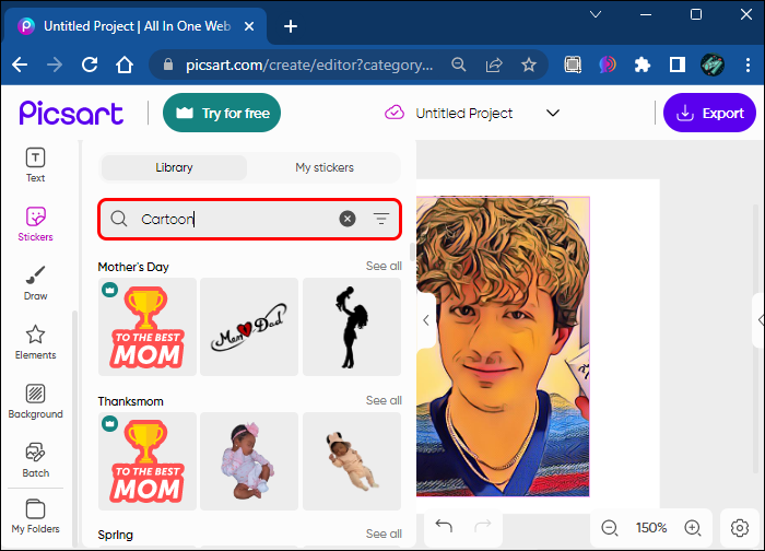 If you want to add cartoon stickers to your photos on Picsart’s web app, here’s how to do it: