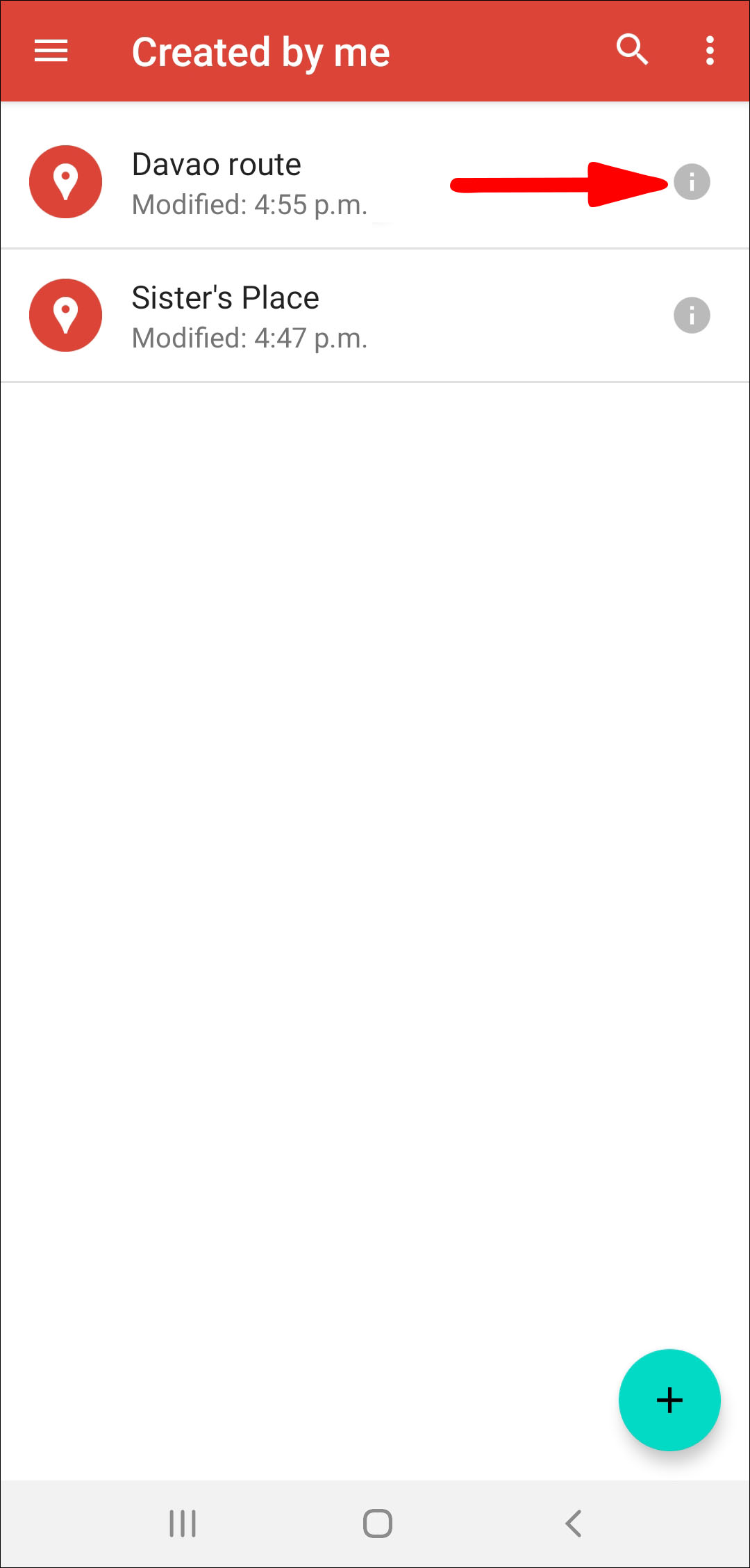 - Locate the map you wish to share, then click on the Info icon.