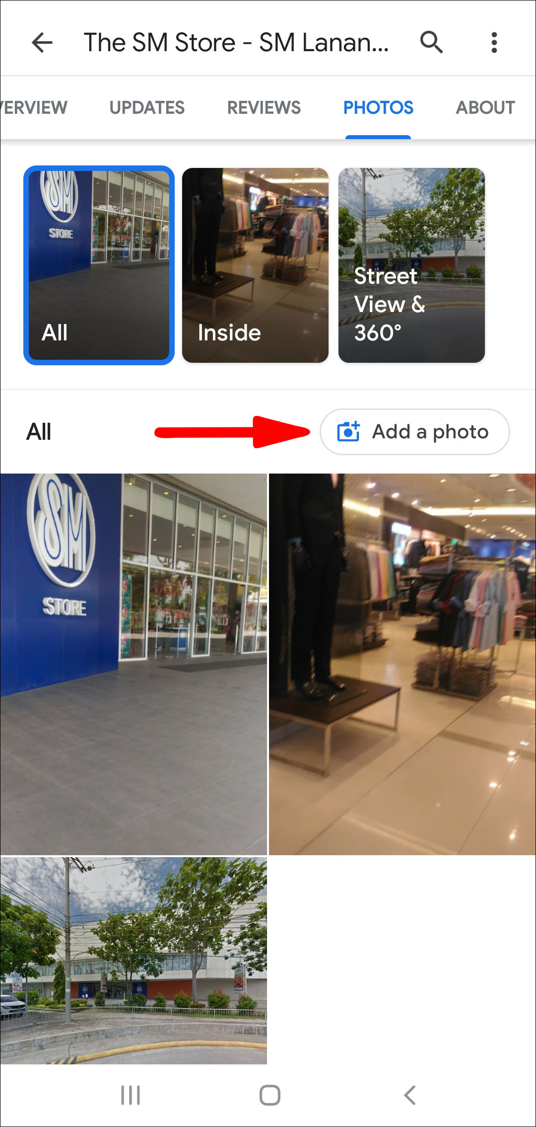 2. Once you’ve chosen a place, select Add a photo.