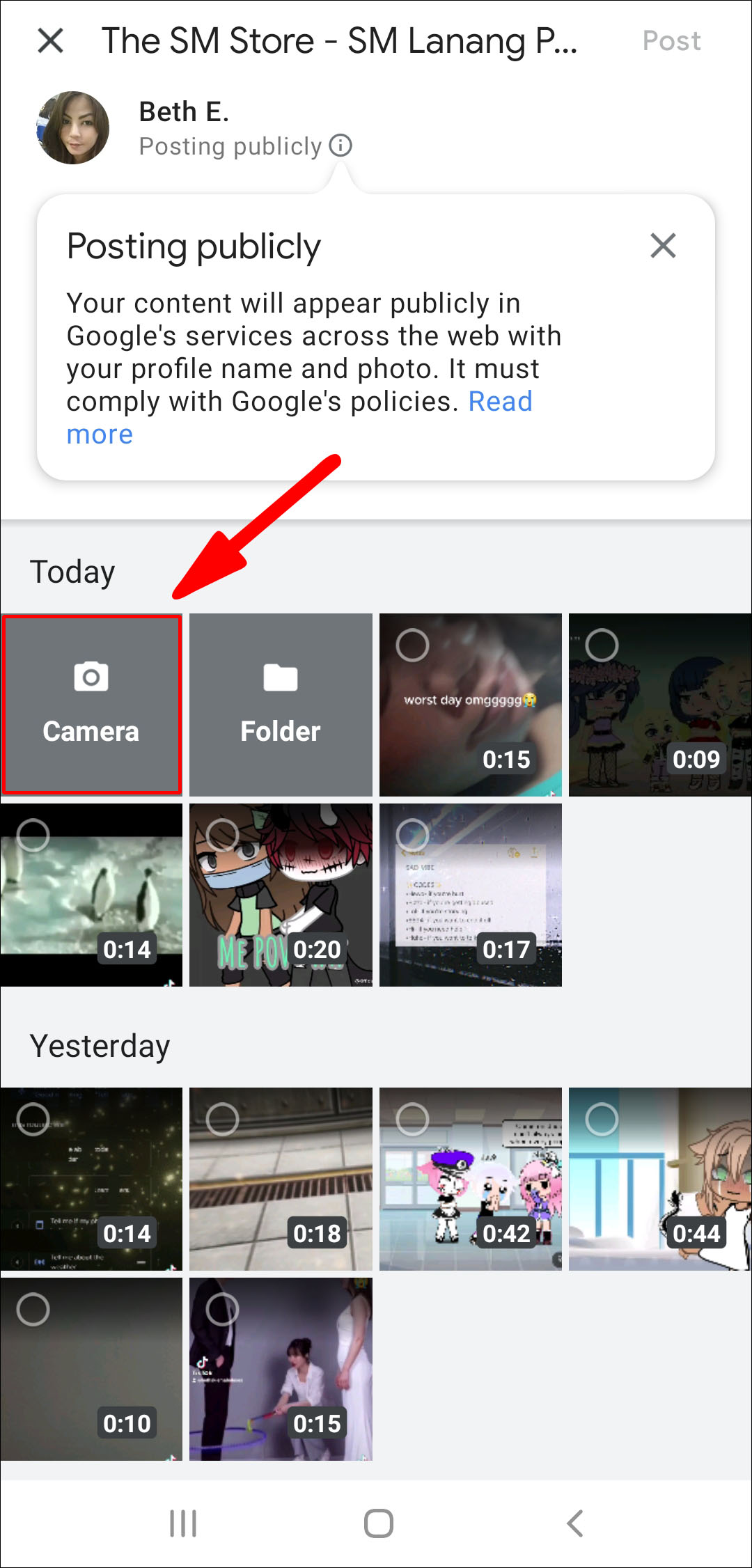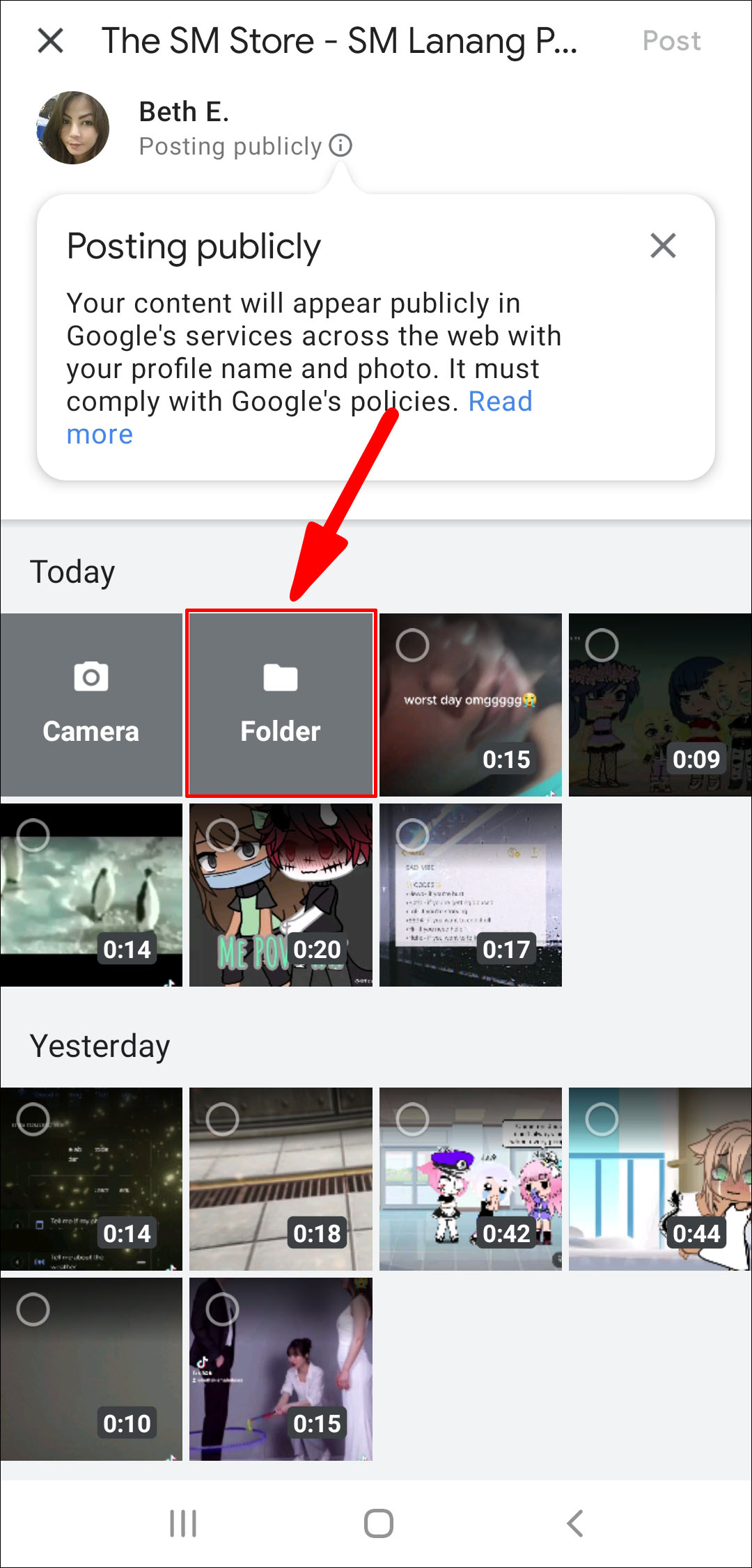 · Click on Folder to select a photo from your gallery.