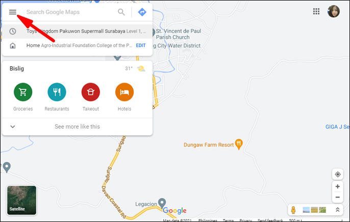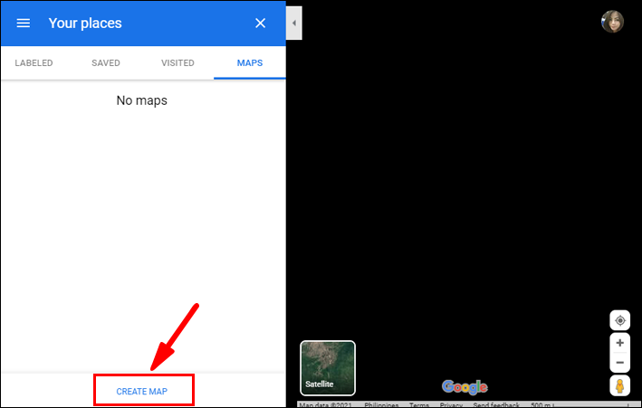 - Then select either Map, Satellite, or Terrain.