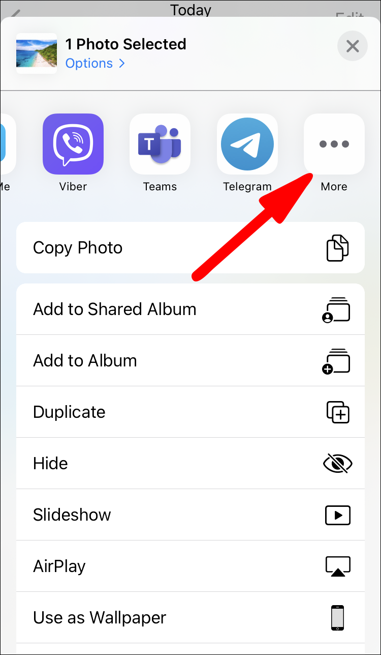 4. Scroll towards the right, then select Photos.