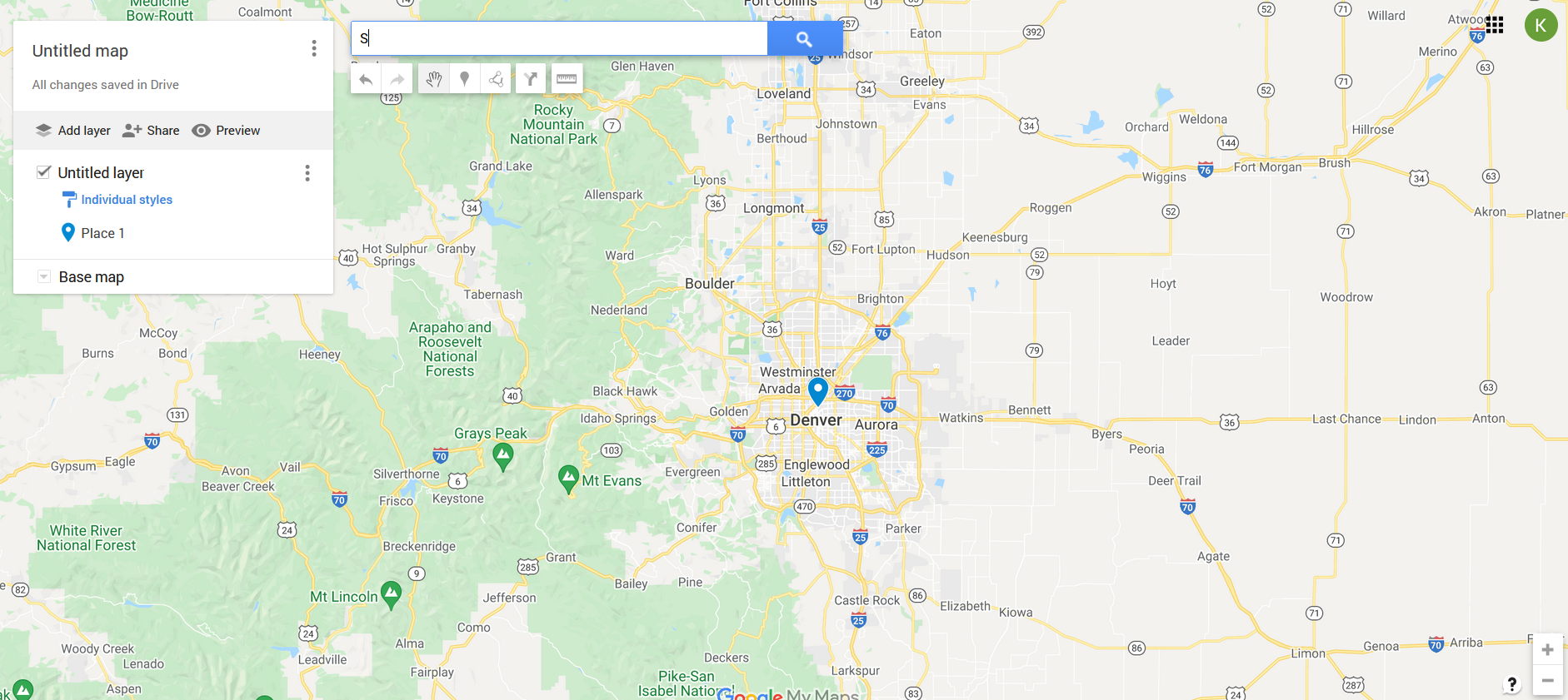 1. Navigate to and sign in to My Maps, then search for a place.