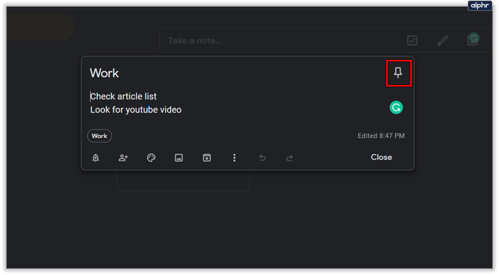 Pins are also a handy way to sort notes in Google Keep. You can use them to put the essential notes on top of the app for better visibility. These pinned items will stay on top if you add more notes after them. Follow the steps to pin a Google Keep note: