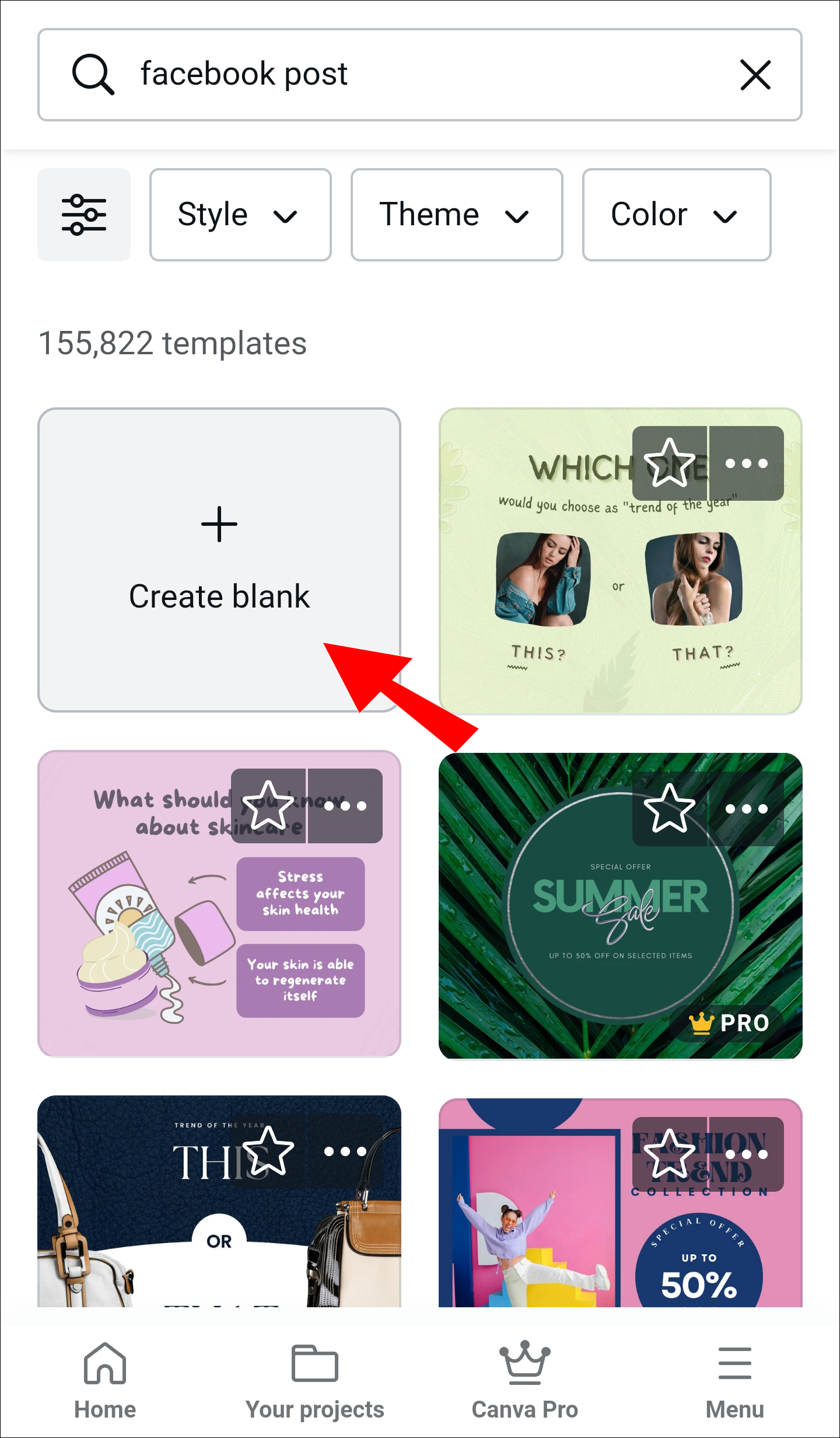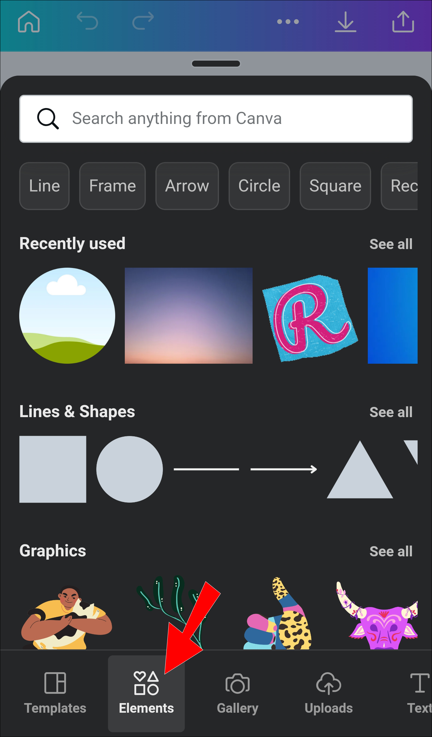 Creating gradient text using the Canva mobile app is a little more difficult than doing it using a PC. It also requires you to have some gradient images saved in your mobile device’s photos. Start by creating a new gradient background.
