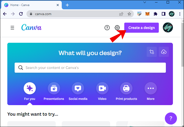 - Open your Canva dashboard and click the + icon at the bottom-right of the screen.