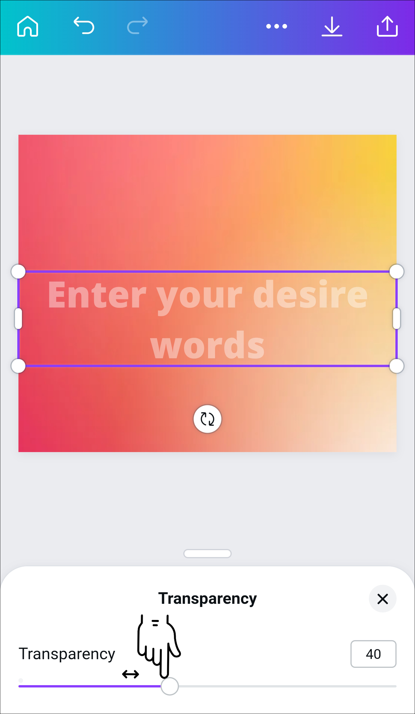 - Select the text box and use the transparency slider to set the text transparency to 40%.