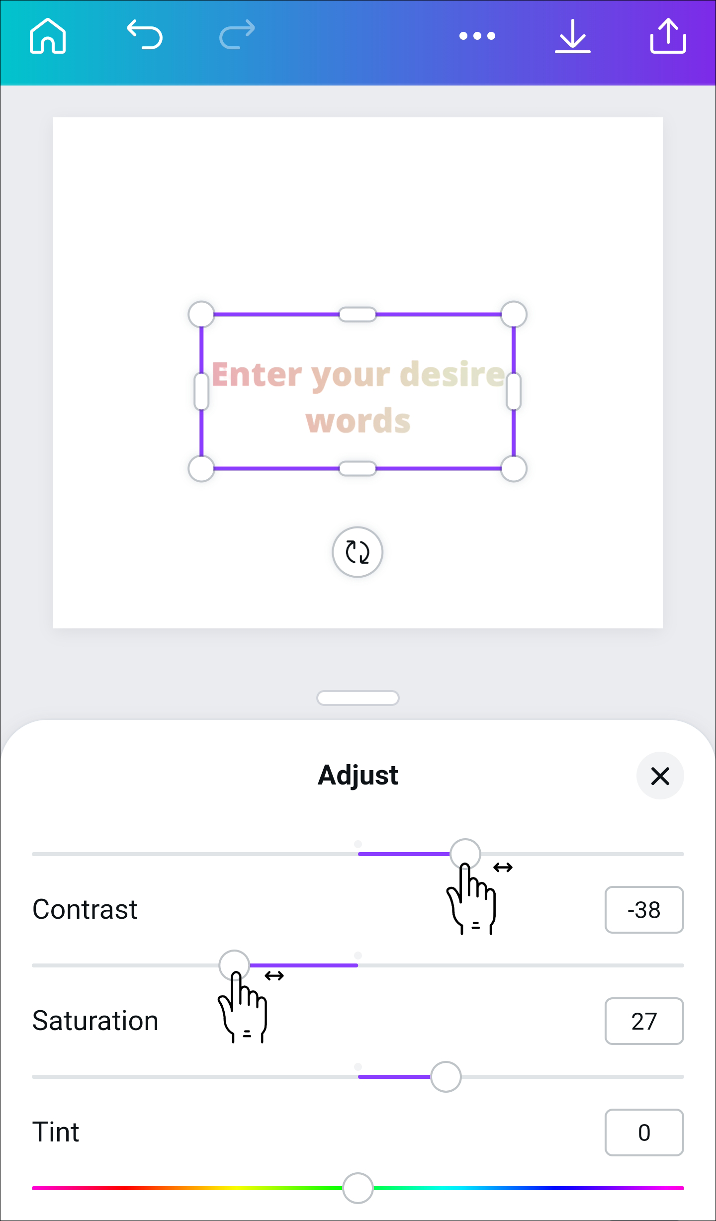 Adding a gradient to text allows it to pop against a flat color background, creating a sense of depth that makes the text stand out. Again, the process varies depending on whether you’re using a PC or the Canva mobile app.