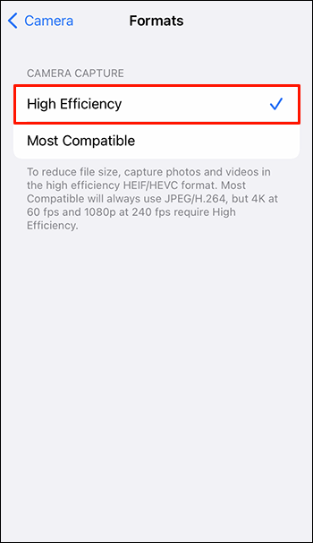 Use the High-Efficiency Image Container (HEIC) Setting in the Camera App