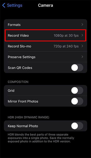 - Select “720p HD at 30 fps” , “1080p HD at 30 fps” , “1080 HD at 60 fps” and “4k at 30 fps.” adjusting from there based on your needs.