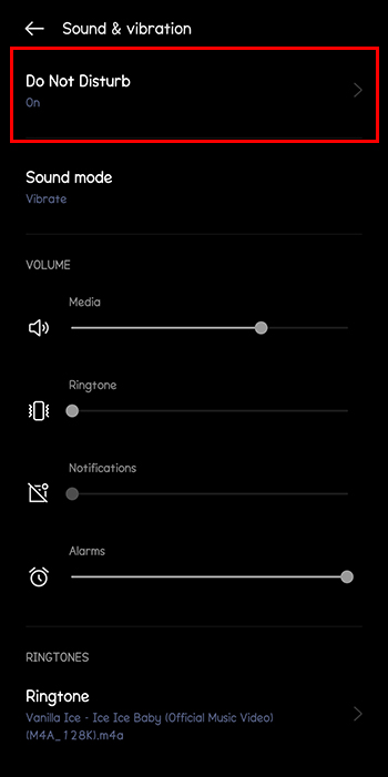 - Find the “Do Not Disturb” setting under “Settings” and “Sound & vibration.”