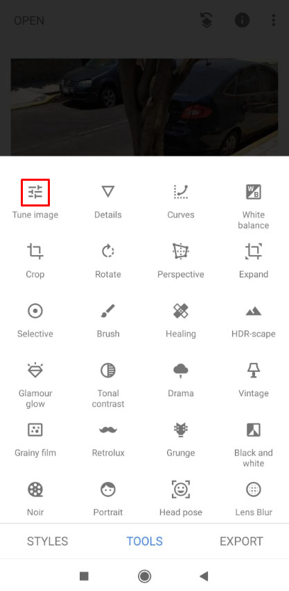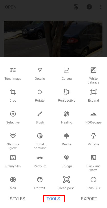 Tap ‘Tools’ at the bottom of the screen once the photo loads.